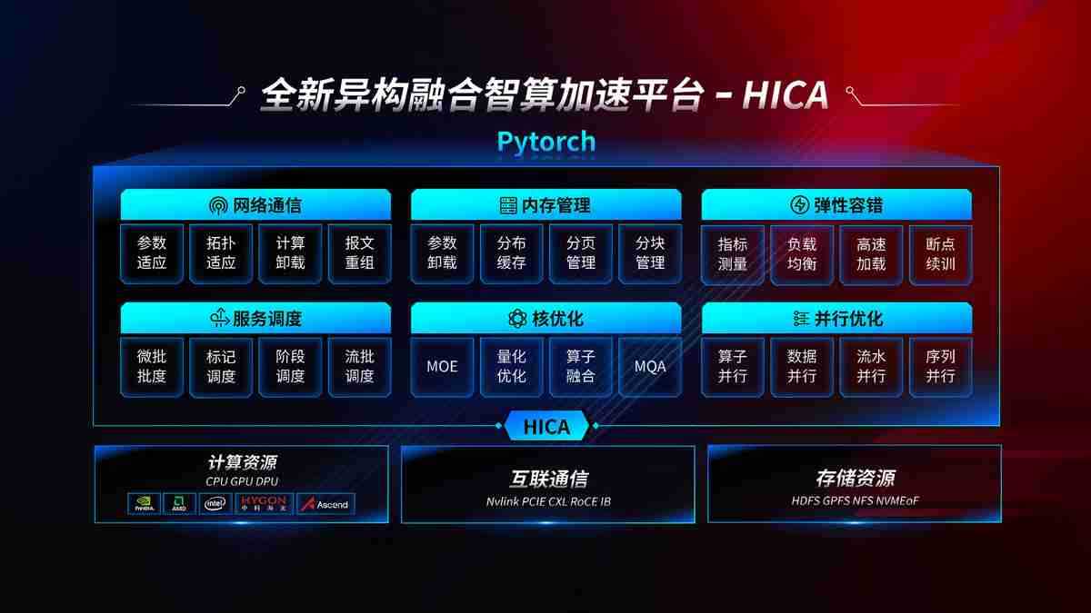 通过自研的服务层、、、、中间适配层、、以及调度编排算法,,,,采用数据并行、、、、模型并行等多种并行方式,,,把并行计算任务进行有效的分解,,,,使其分别由相应的软件栈和算力资源来承接。。。。当GPU资源变化,,,HICA可以实时动态调度计算子任务并调整模型拓扑和架构,,,,以充分聚合各种算力资源。。。。
