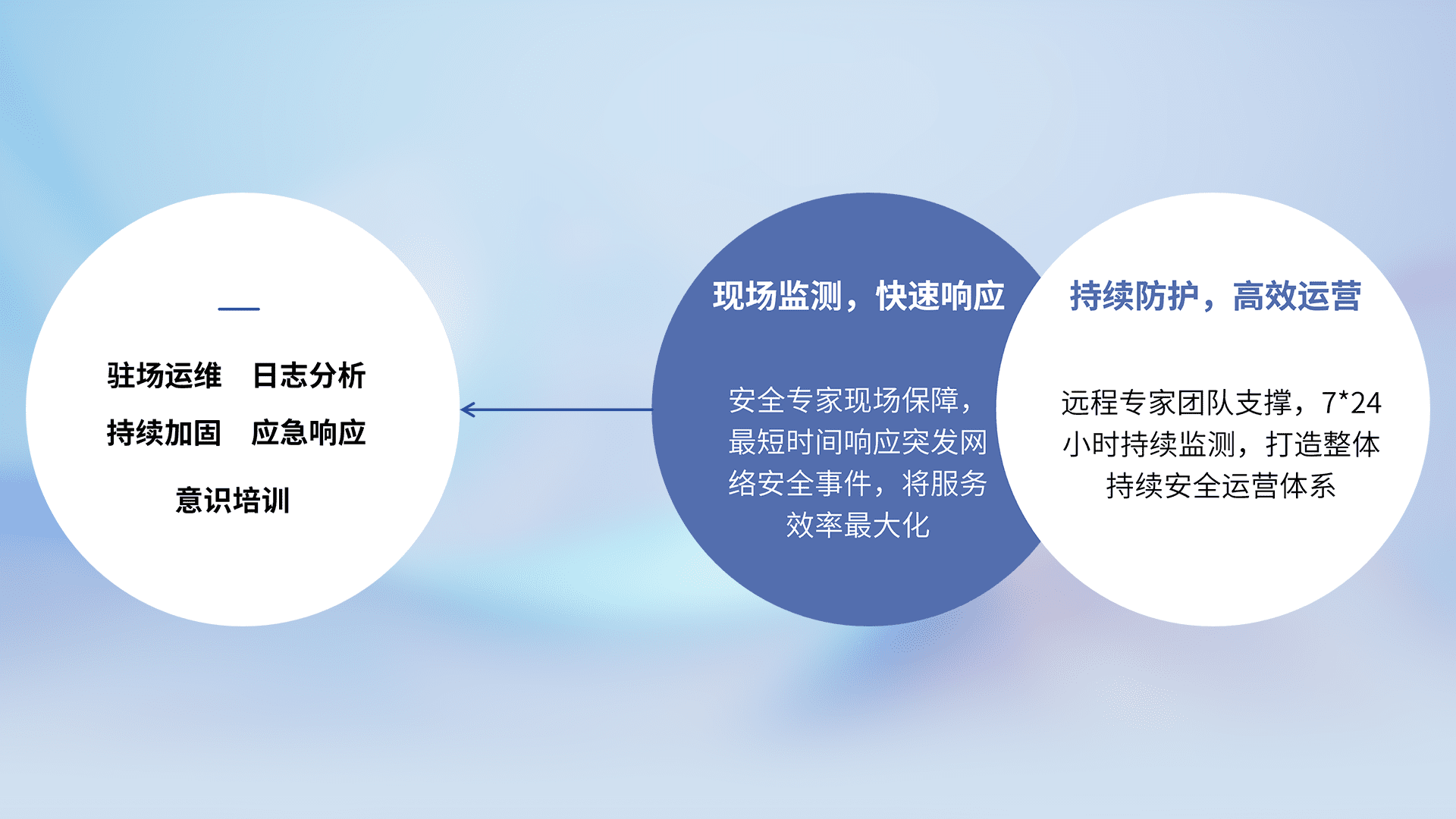 7X24小时持续监测安全事件,保持安全策略有效性,降低资产脆弱性风险,,精准拦截黑客攻击,,,,减少被黑客利用的机会,,,,第一时间遏制,,降低损失。。